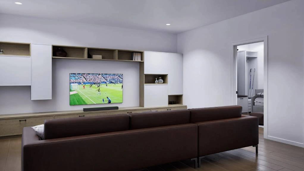 A fireplace adds charm and warmth to a living room in an apartment. Thoughtful wall design and interior planning enhance both style and functionality. This design creates a cozy, inspiring space perfect for relaxing or entertaining.