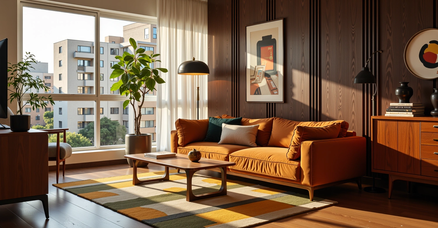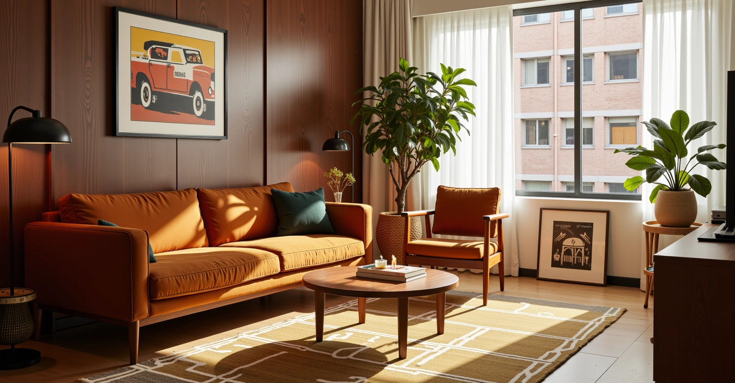 With warm caramel tones as the main line, it combines the retro texture of mid - century furniture and the minimalist lines of modern design, matched with artistic paintings and green plants. It creates a personalized nostalgic modern living atmosphere in the light and shadow, and every furnishing exudes the unique charm of the collision between retro and fashion.