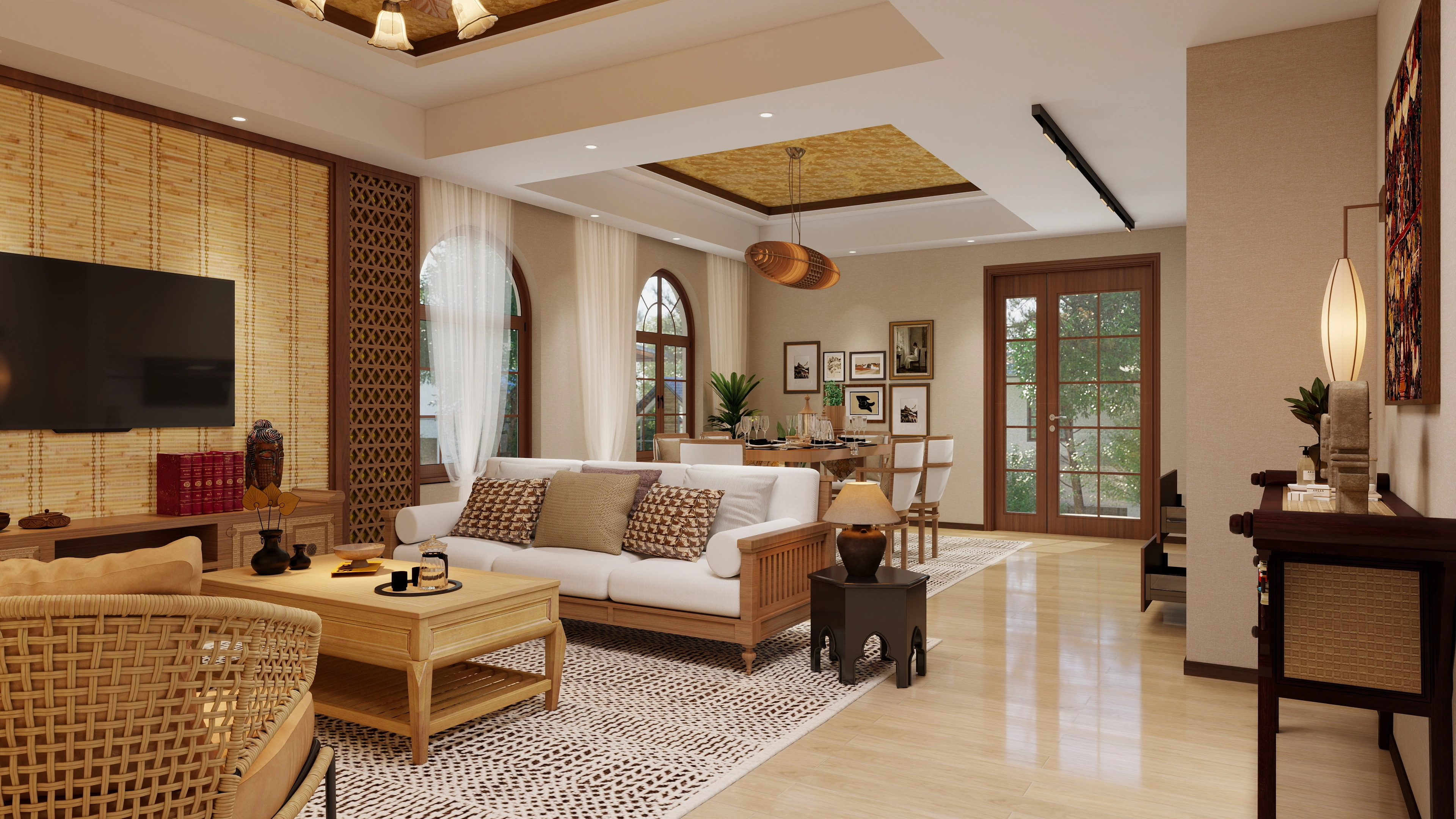 Whether it is the woven furniture and carved decorations in the living room, or the characteristic lamps and patterned bedding in the bedroom, they all exude a strong exotic charm. The soft light and sufficient natural light intertwine, creating a mysterious, comfortable and culturally rich living atmosphere, as if people can immerse themselves in a different exotic life situation.